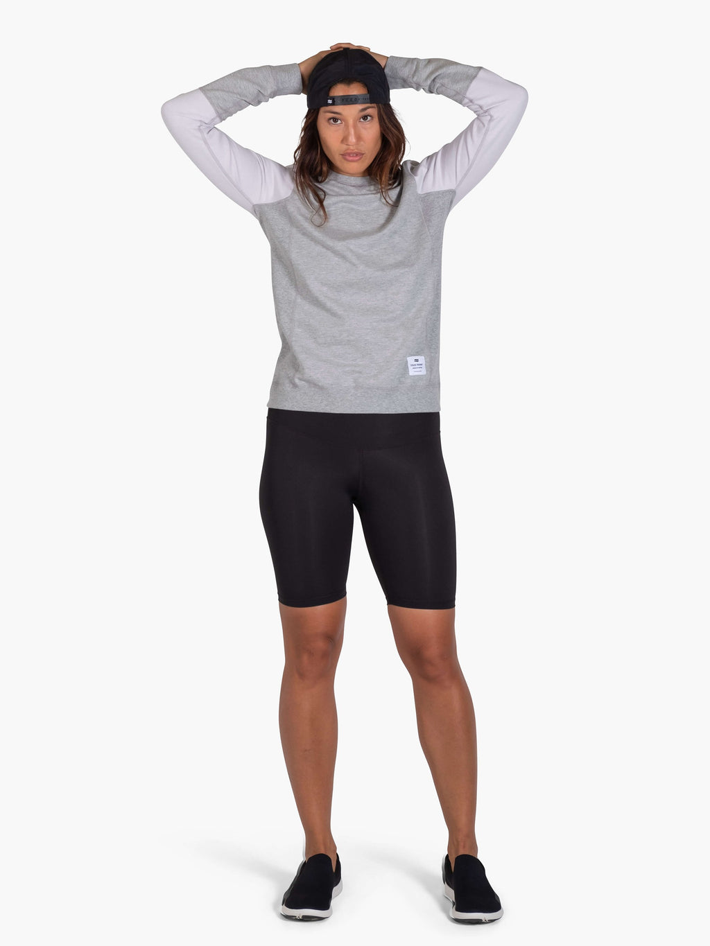 STRIKE MVMNT Two tone colorblock women’s pullover sweatshirt in Lunar Grey and Chalk White with premium side ribbed panel for maximum mobility.
