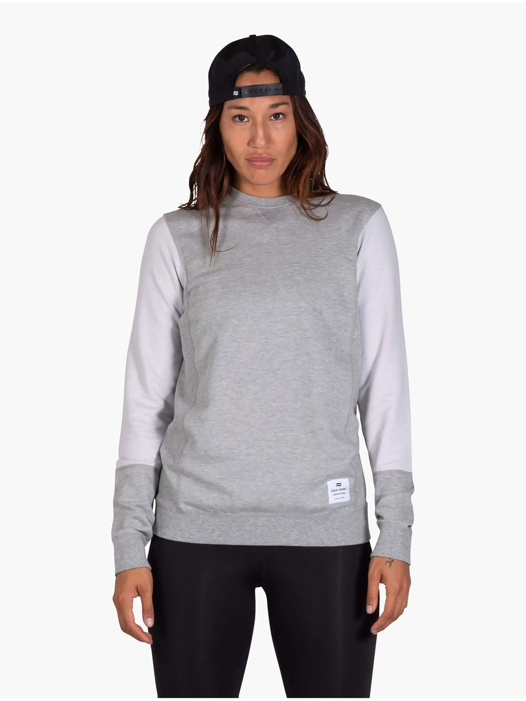 STRIKE MVMNT Two tone colorblocked women’s crewneck sweatshirt in Lunar Grey and Chalk White