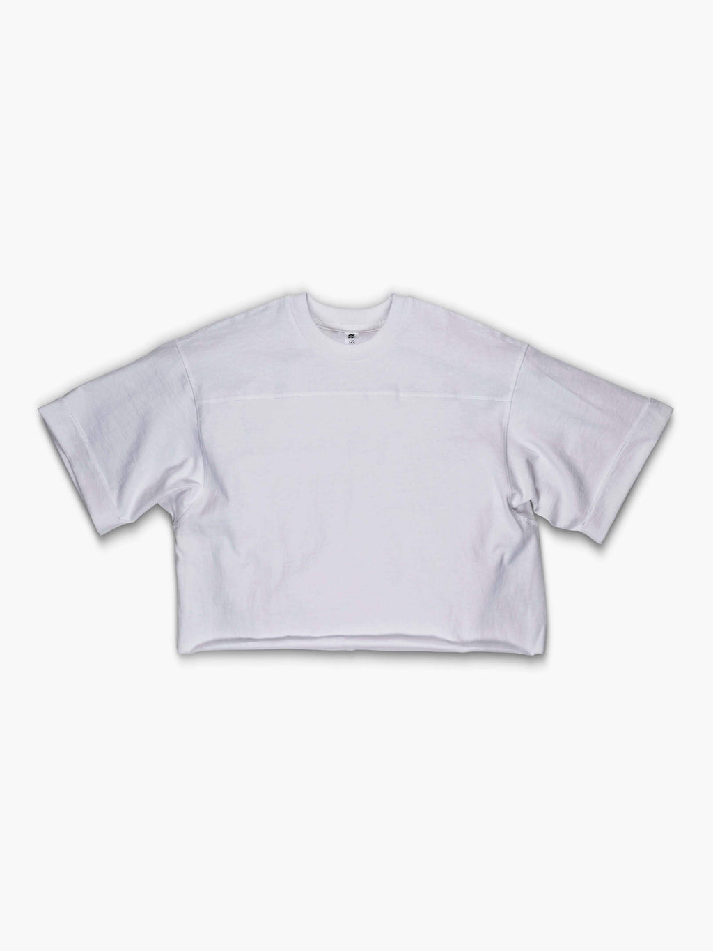 Cropped vintage football jersey style with a dropped shoulder and oversized fit.
