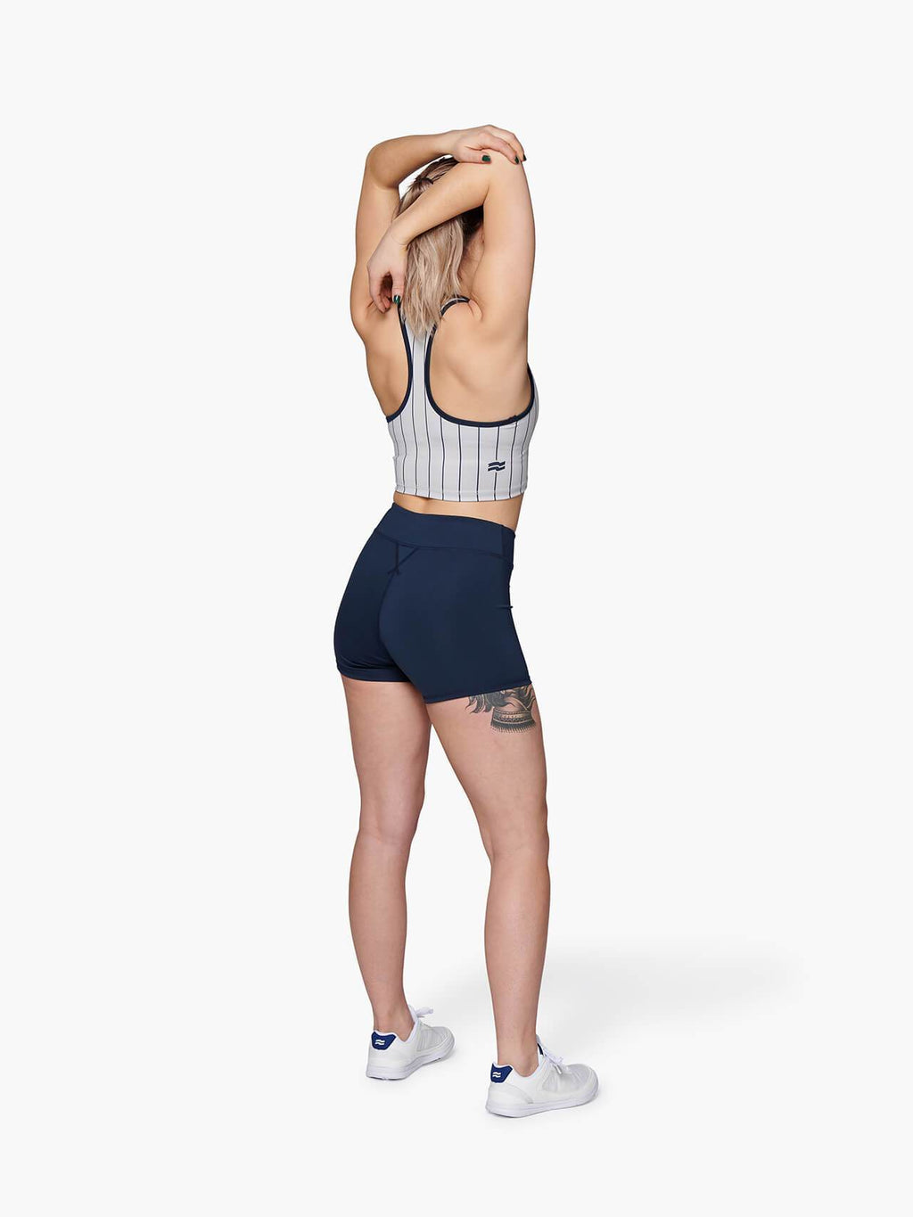 High-coverage sports bra meets the timeless silhouette of an athletic racerback cropped tank. Medium support tailored for movement. Wear it on its own or under a tank or tee.