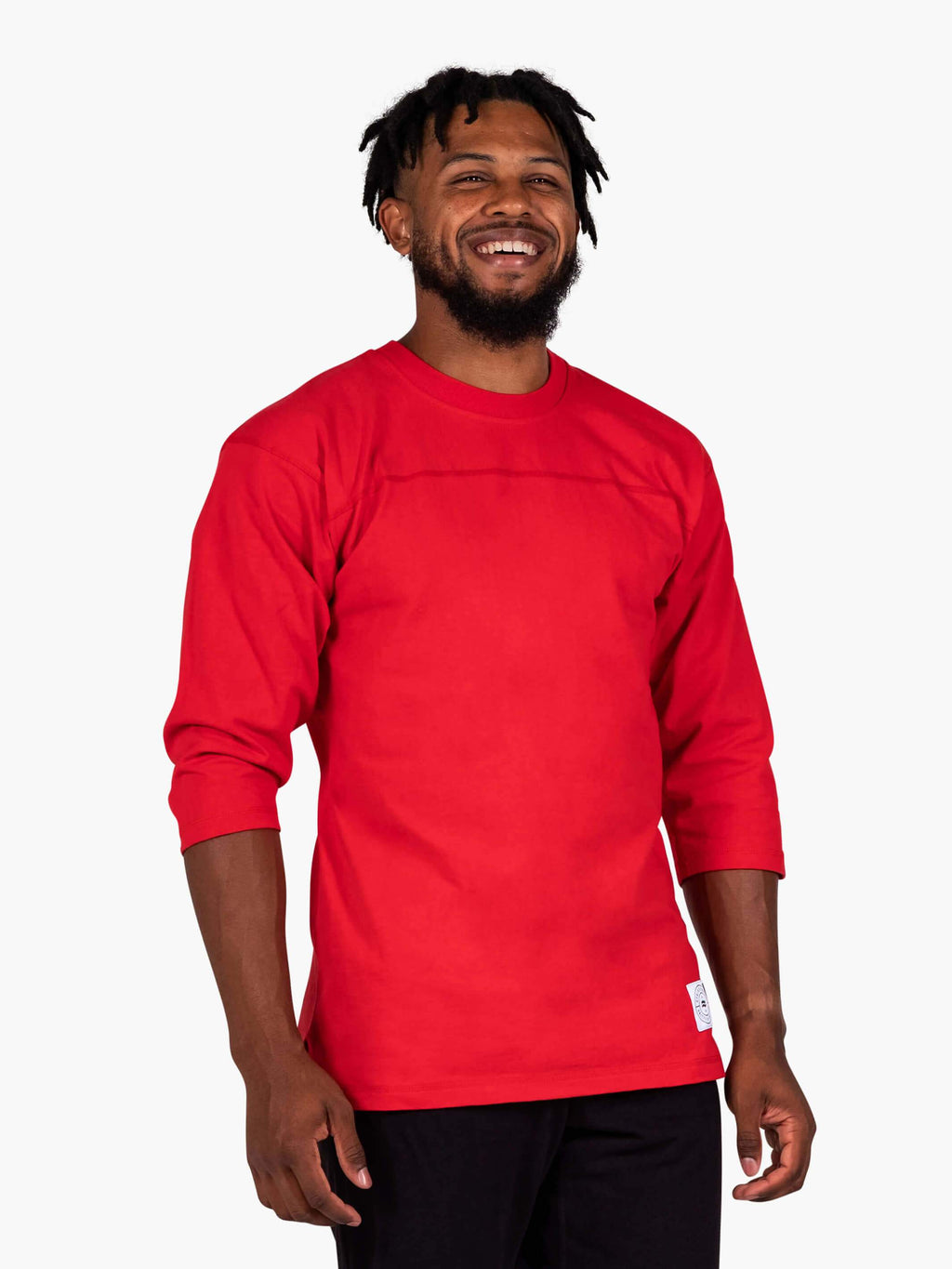 U.S. milled heavyweight cotton jersey feels comfortable and substantial on body. Premium ribbed underarm gussets offer extra breathability and full range of motion. This piece is perfect as a first or second layer.
