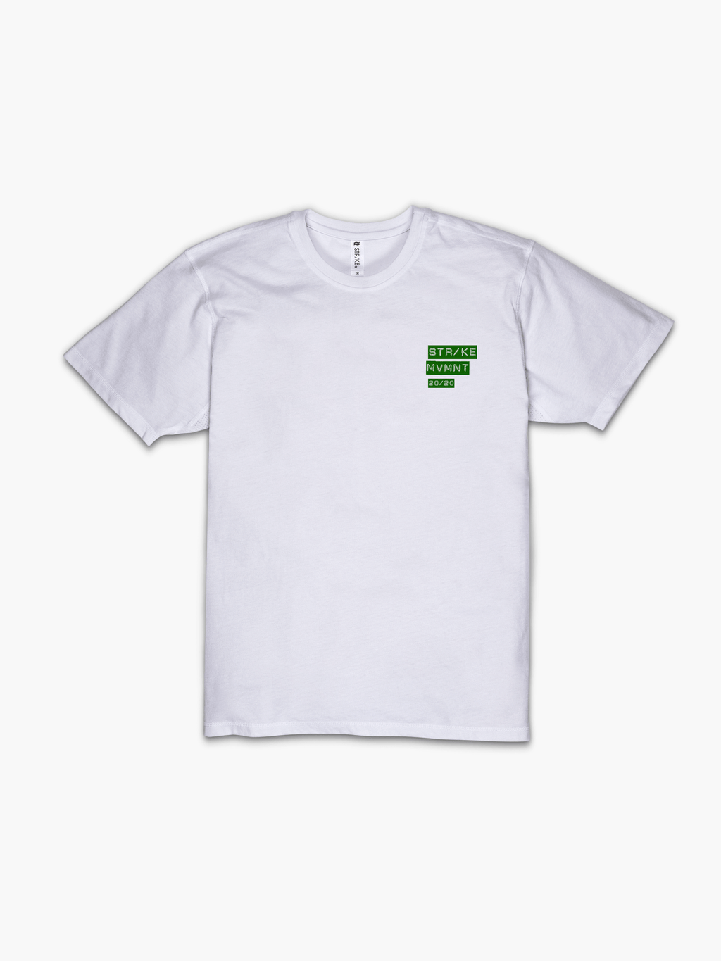 Strike Movement Timeless Vented T-Shirt with 20/20 Vision print in Classic White and Green front view