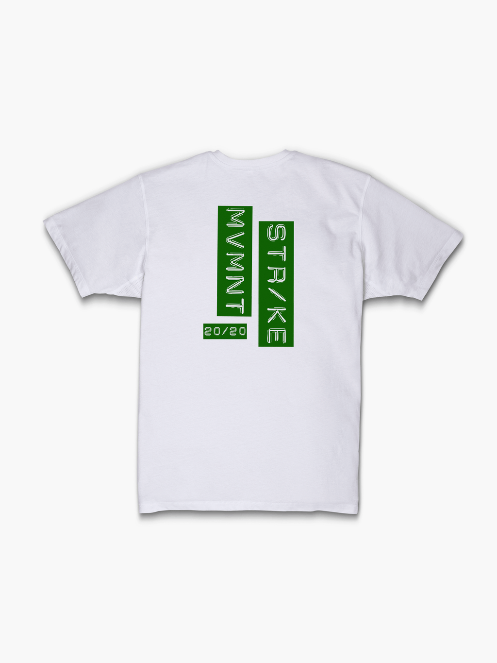 Strike Movement Timeless Vented T-Shirt with 20/20 Vision print in Classic White and Green back view