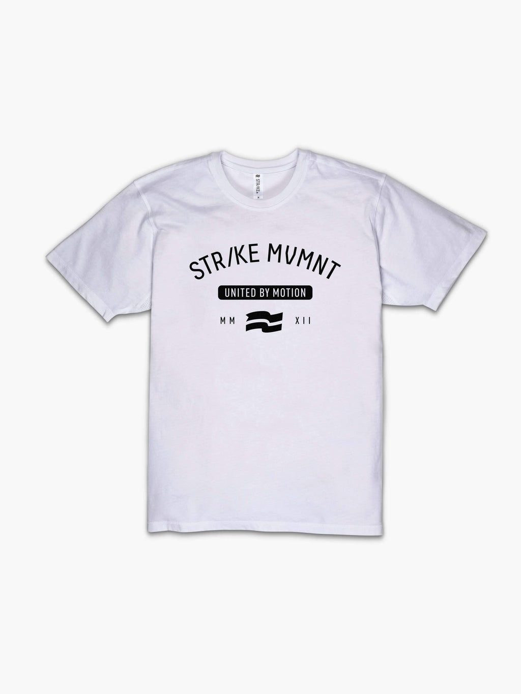 Strike Movement Timeless Vented Tee with United By Motion print in Classic White and Black front view