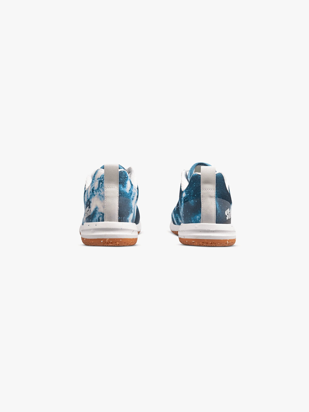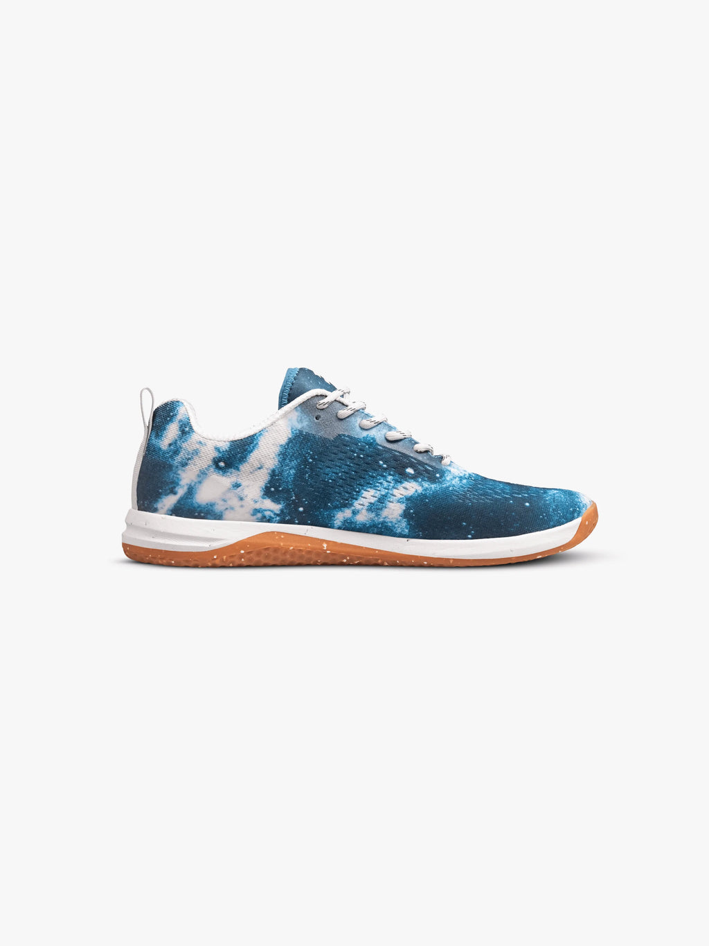 Unique aqua blue photo print spans across the left and right shoes. Midsole and gum rubber outsole features recycled flex.